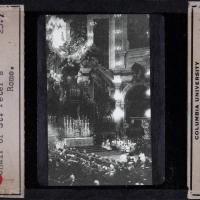 Commissioned by King Ferdinand and Queen Isabella of Spain, on the site of 9th century chapel and supposed burial site of St. Peter. Titular Church served by the Franciscans. Many famous artists have contributed to the decoration of the church over the years, including: Francesco Fontana, Sebastiano del Piombo (nave frescos), Bramante (the Tempietto), Giovanni del Vecchio, Giorgio Vasari (altarpiece), and Bernini (Raimondi chapel).