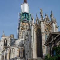 Exterior: Chevet, Southeastern Facde, facing West, Axial Chapel, Radiating Chapels, Crossing Tower